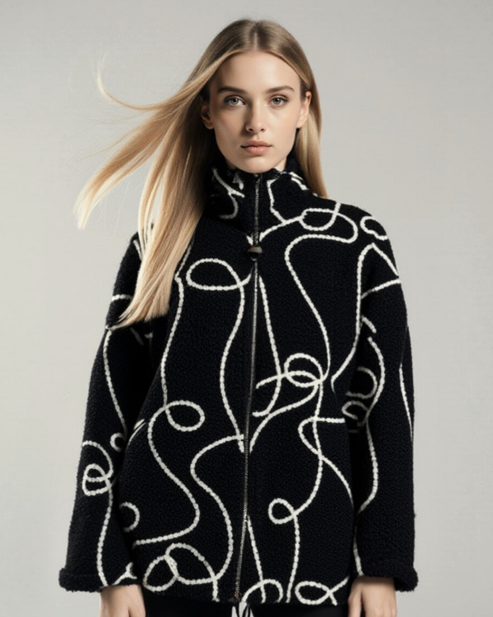 • Kastenjacke mit Wellenmuster, Kapuze und modernem Schnitt – stylisch, bequem und warm.