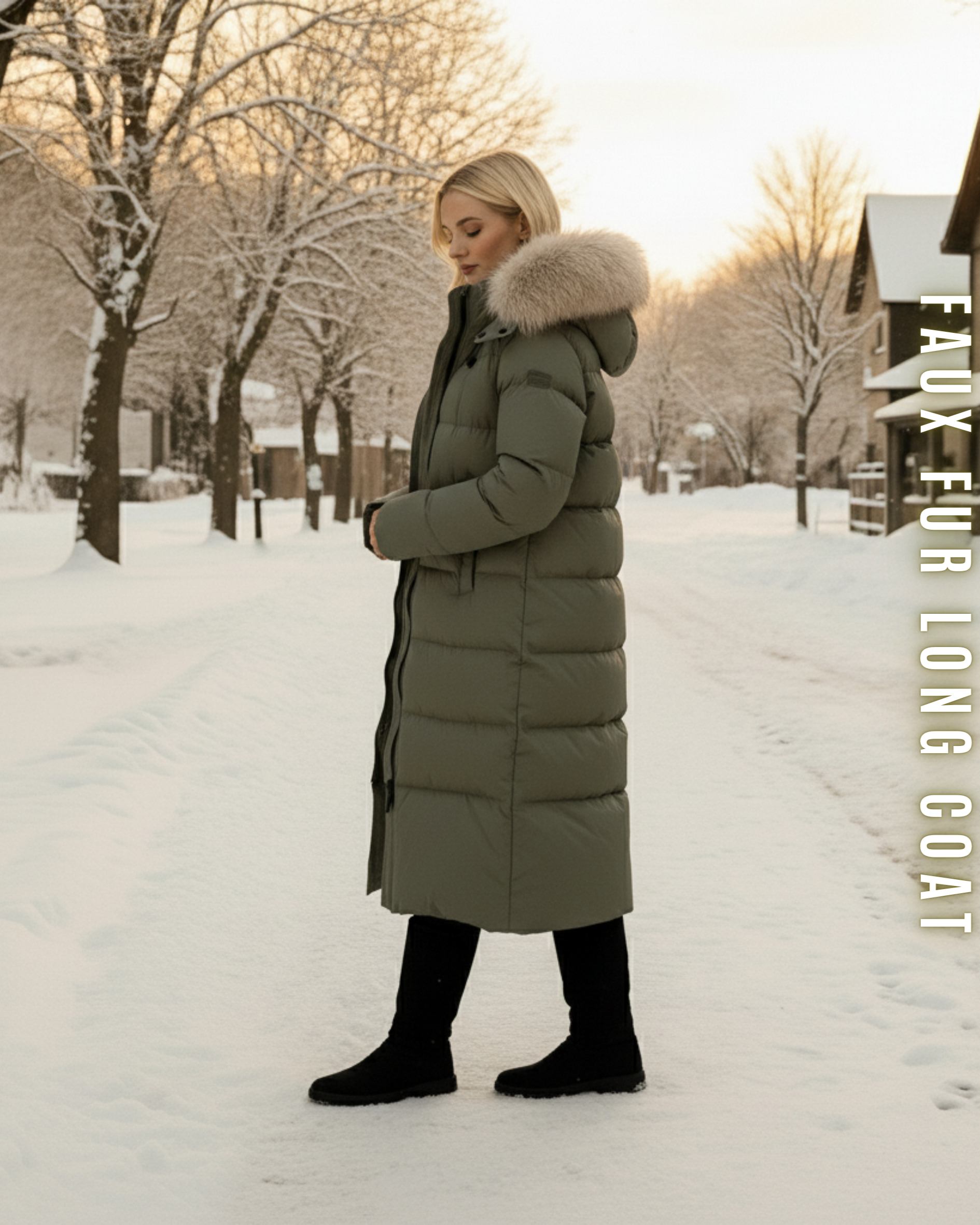 Langer Steppmantel "Arctic" - Kapuze