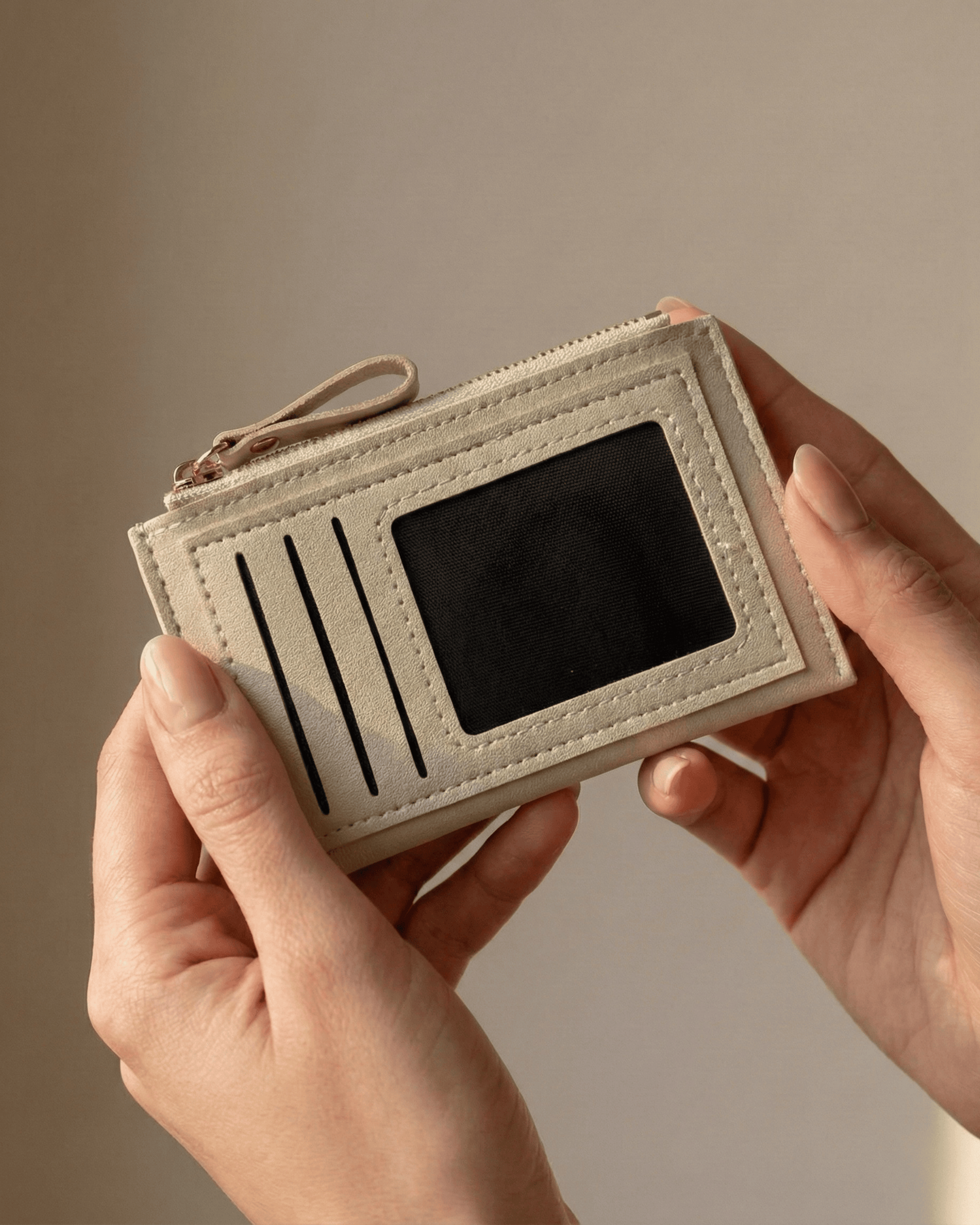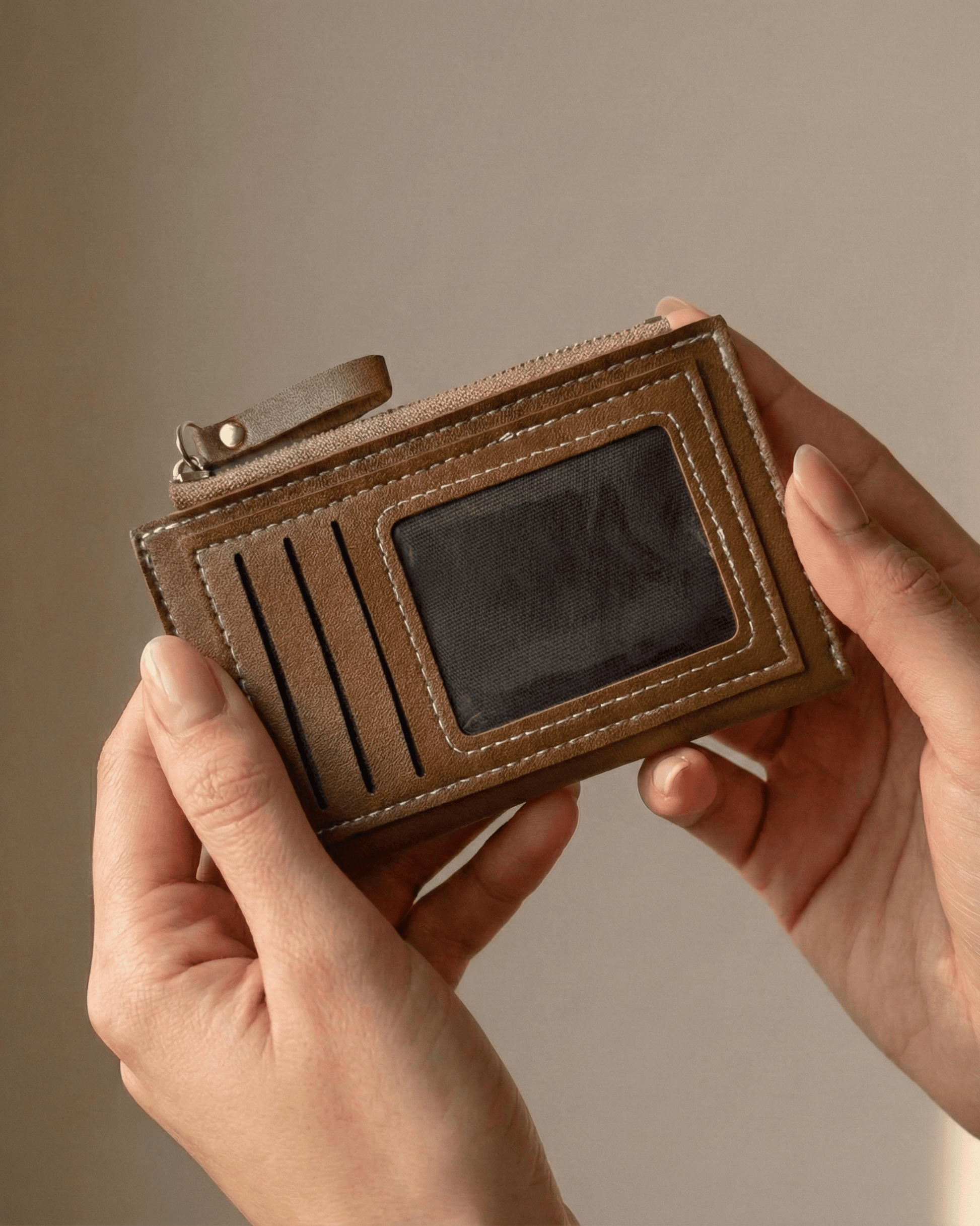 • Verarbeitung: Mit Reißverschlussfach und Ausweisfenster aus robustem PU-Leder.